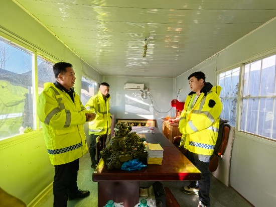 检查组一行实地查看了大城工区辖段路域环境及所辖救援单位驻地,边主任就大城工区岁末年初养护安全工作强调了以下四点,一要提高认识,增强荣誉感与使命感,全体在岗职工要打起十二分精神,在思想上高度重视,在行动上充分准备,坚决严格落实各项保通保畅工作举措;二要加强日常养护管理,养护巡查人员要加强节前沿线桥梁及附属设施、护栏、道路指示牌等巡查,及时清除辖区路段垃圾杂物,全面做好春节前夕路面日常保洁工作,保持路容路貌整洁,树立津石高速良好形象;三要合理安排养护作业计划,尽可能避免占道施工,确保道路安全通畅;四要加强值班值守和信息报送工作,严格执行双人双岗领导带班和24小时值班值守,认真遵守值班纪律,保持通讯畅通,做好值班记录。遇有紧急突发事件,必须在规定时限内上报,并及时妥善处置,避免出现舆情;